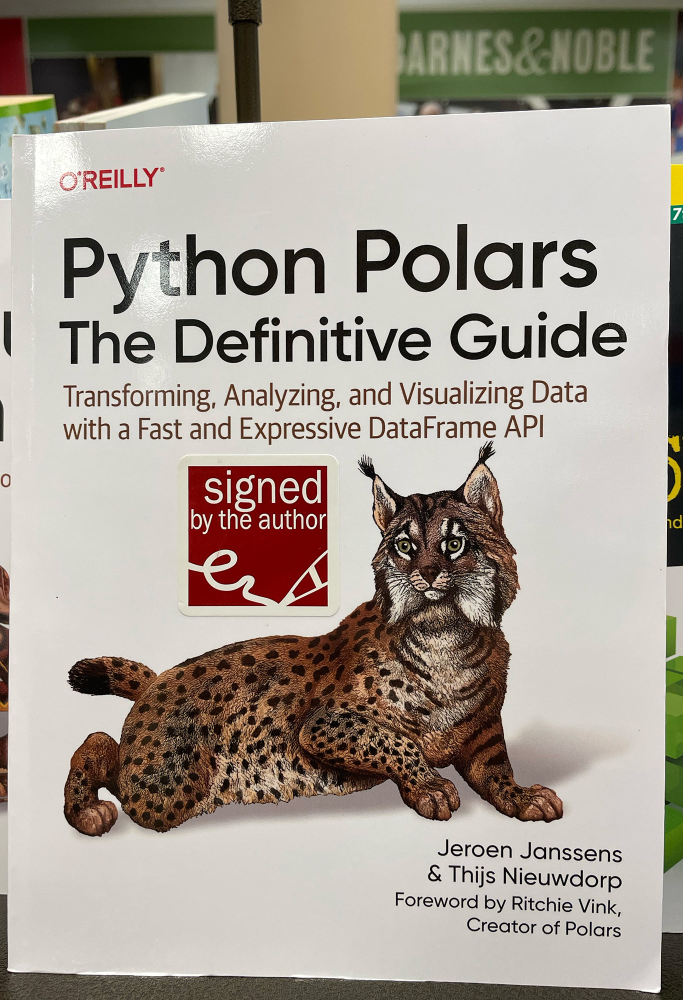 If you’ve taken a picture with the book, or spotted the Iberian Lnyx in an unusual or beautiful setting, share it with us! Simply post it on your favorite social media platform or on the #book-the-definitive-guide channel on the Polars Discord server, tag Jeroen and Thijs, and you might just see it featured on this page.